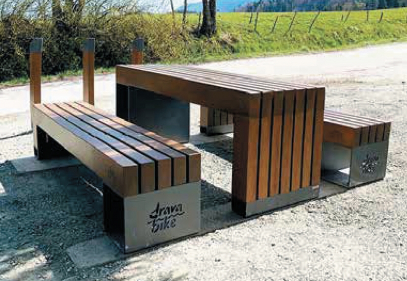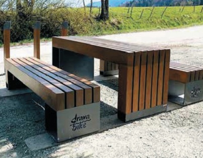nosači od čeličnog lim, pocinčano i plastificirani, tvrdo drvo zaštićeno dekorativnim premazom, stol 2000x660/750, klupa 2000x450/450 mm 2000